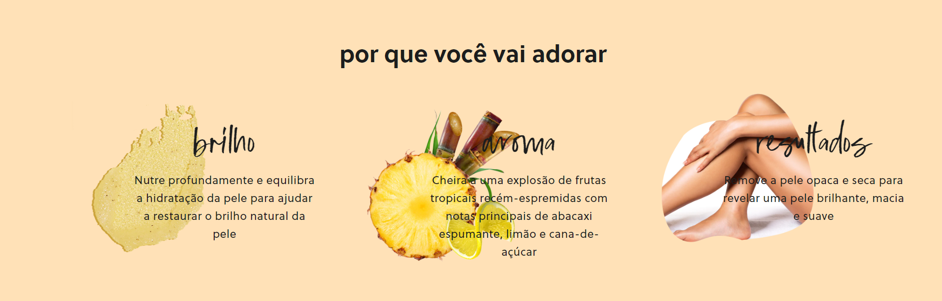 Aumente a sua rotina de banho, esfoliação durante o dia e revele uma pele macia e brilhante com o aroma suculento de Abacaxi! Feito com açúcar, manteiga de karité, enzimas de abacaxi, ácido poliglutâmico e uma variedade de óleos naturais, incluindo óleos de prímula, abacate, macadâmia, amêndoa doce, cártamo e laranja.