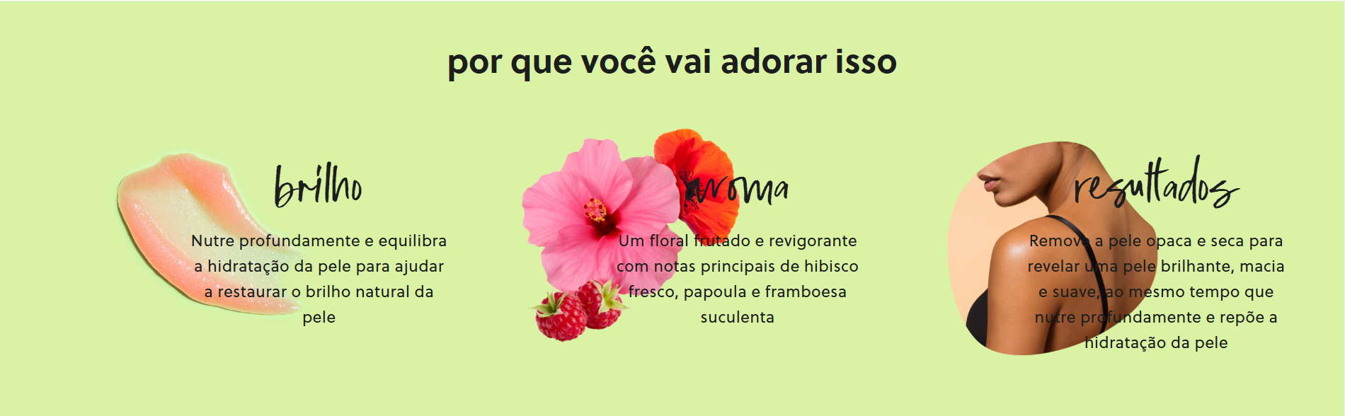 Revele uma pele macia e brilhante com o aroma alegre e florido do Hibisco Rosa! Feito com Açúcar, Manteiga de Karité, Algas Vermelhas, Minerais do Mar Morto e uma variedade de óleos naturais, incluindo Óleos de Prímula, Abacate, Macadâmia, Amêndoa Doce, Cártamo e Laranja.
