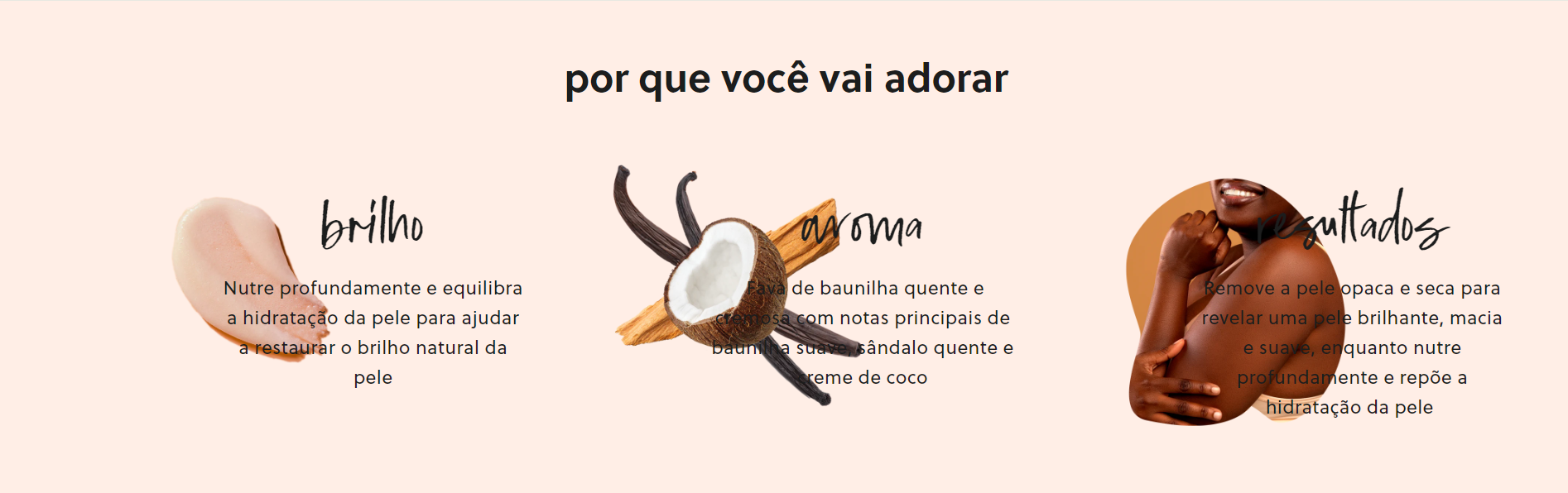 Revele uma pele macia e brilhante com o aroma cremoso e clássico da Baunilha! Feito com açúcar, manteiga de karité, baunilha, ouro coloidal e uma variedade de óleos naturais como óleos de prímula, abacate, macadâmia, amêndoa doce, cártamo e laranja para deixar a pele com uma sensação boa e com um cheiro delicioso.
